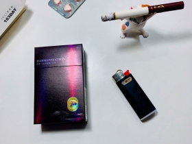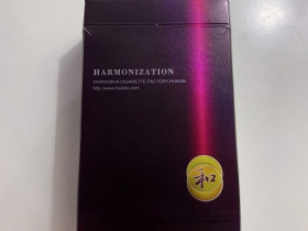 这款烟我觉得品牌应该就是"和"牌,因为烟盒上没有找到"白沙"的影子。深紫色的烟盒颜色,右下部有两个金圆形重叠,重叠部分里面只有"和"字商标。翻盖上有"HARMONIZATION"英文和"湖南中烟工业有限责任公司出品"小字。开包嗅香,醇醇的烟草酵香。过滤嘴也是深紫色的,有一粗一细两道金围圈,围圈下是"HARMONIZAION"英文,上方是金环圈住的"和"字商标。斜纹卷烟纸,烟头端有"668"数字。
